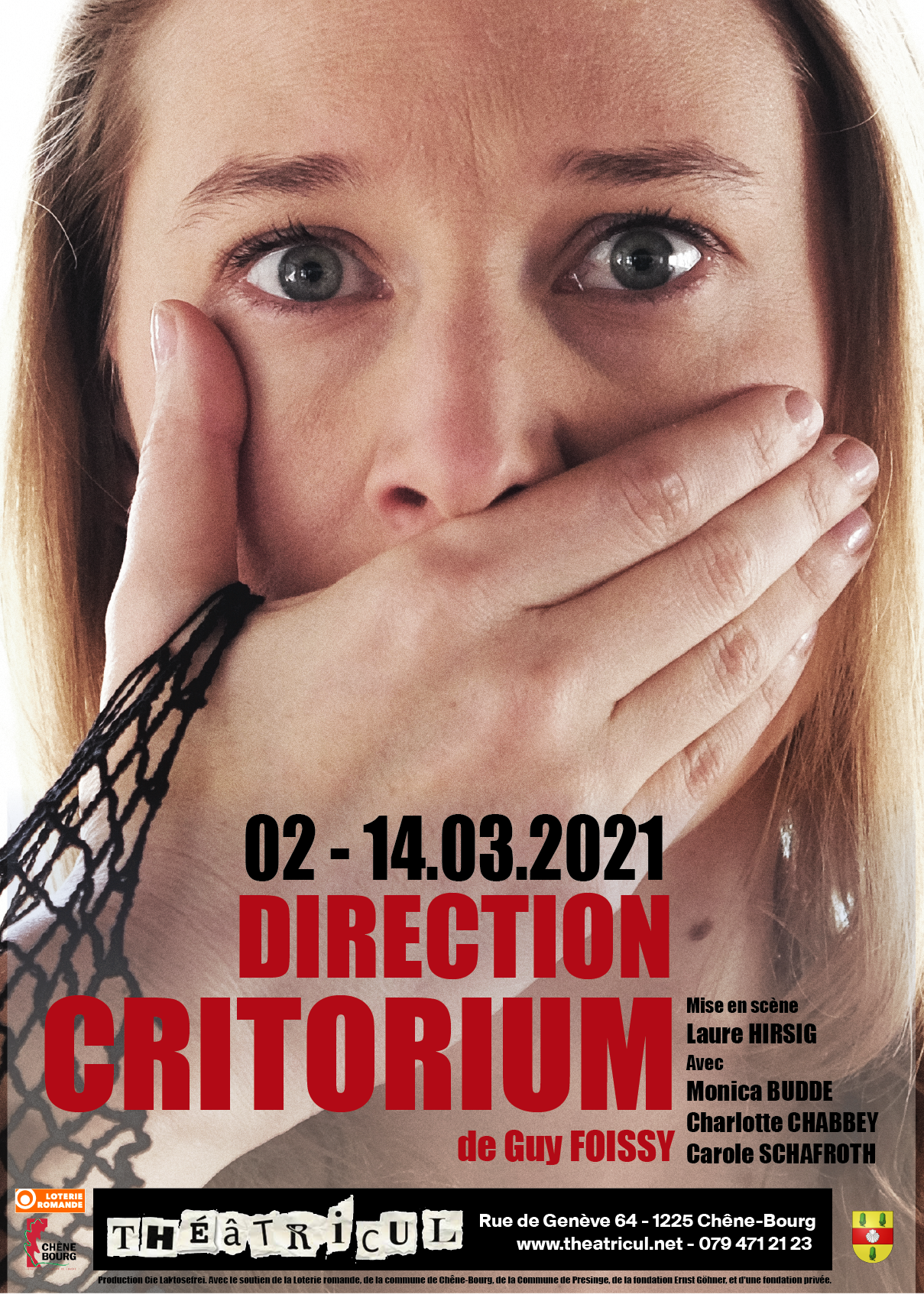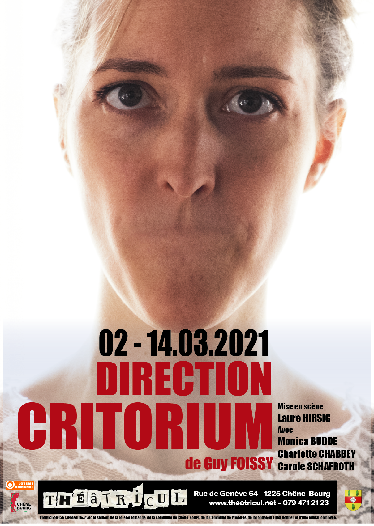 Repéré par les comédiennes Carole Schafroth et Charlotte Chabbey qui en commandent la mise en scène à Laure Hirsig (laquelle propose le 3ème rôle à Monica Budde), Direction Critorium écrit par Guy Foissy en 1988, percute 2020 de plein fouet.
